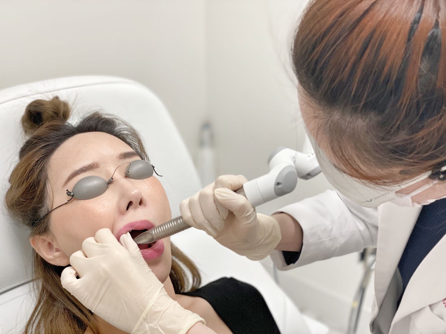 Fotona4D独有Smooth模式,是国内首个口内激光治疗方式。 因为口腔粘膜更贴近筋膜层,这样由内而外的加热可以使得能量大且效果好。(Fotona 4d Toronto) 它在口腔内进行治疗,通过累积加热口腔内粘膜,使局部温度累积上升到65°c,这个温度可收紧胶原纤维和启动胶原蛋白重组,改善法令纹和木偶纹。(Fotona 4d Toronto)